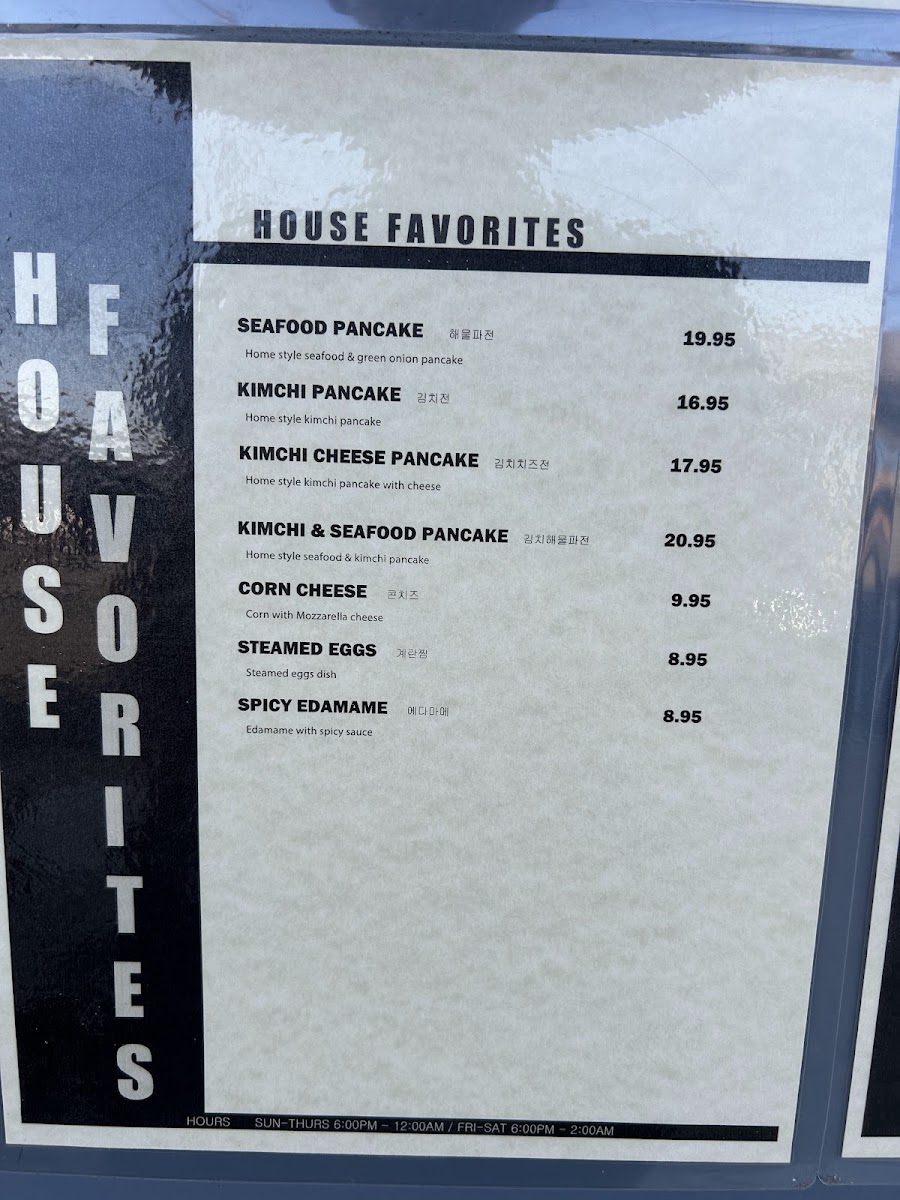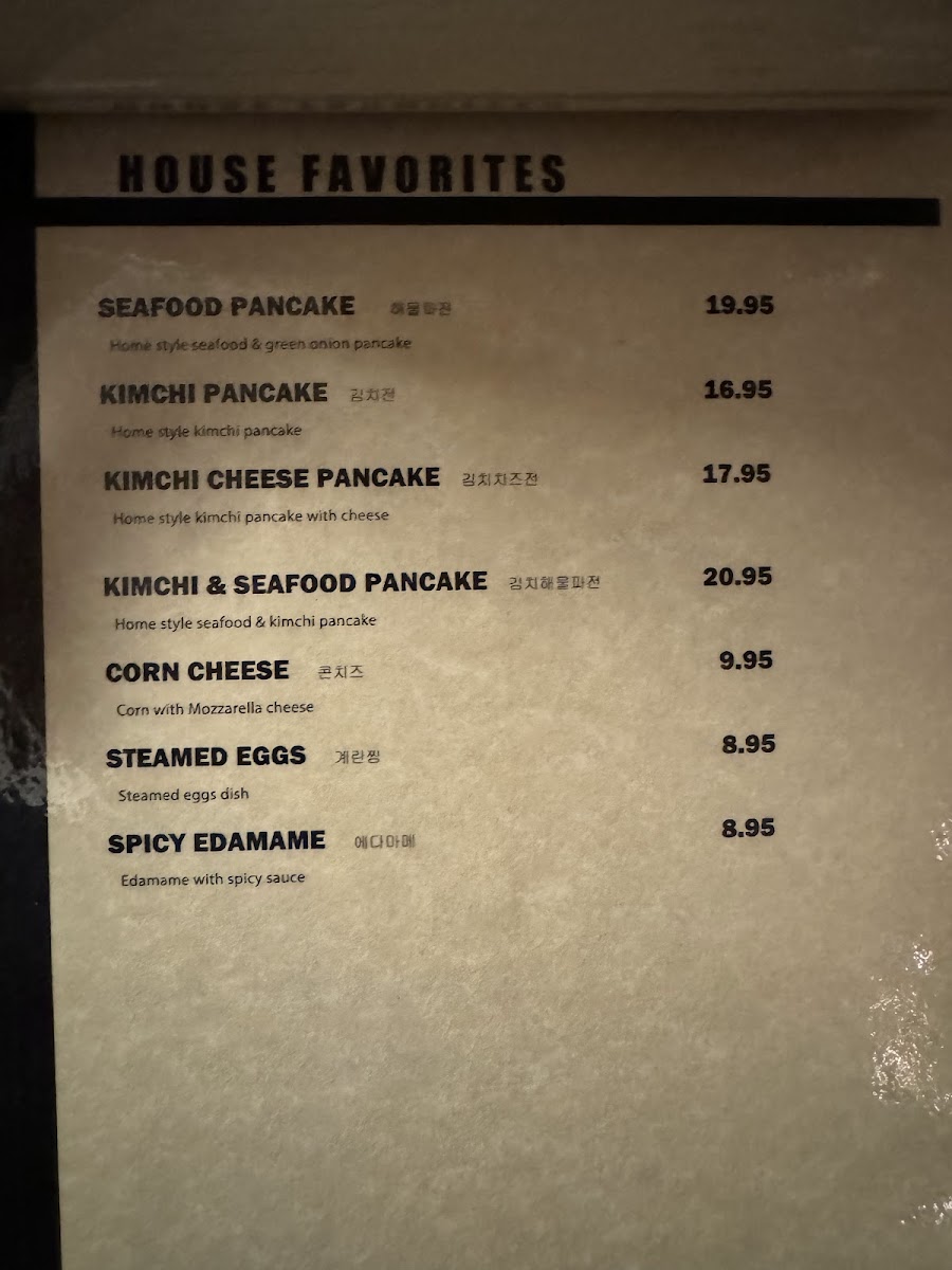 The House Favorites menu is home to delightful options like the Kimchi Pancake (김치전), a crisp, savory dish that embodies the essence of comfort food, and the Seafood Pancake (해물파전), a crowd-pleaser loaded with delightful morsels of seafood. Add on some Spicy Chicken Wings, and you’ll understand why guests rave about the flavor-packed offerings here.
